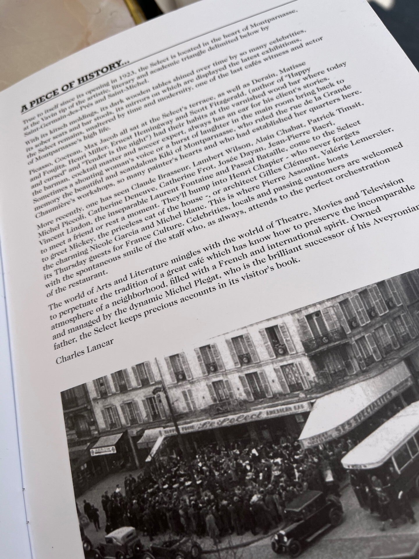 De sfeer trekt me aan. De cafes zijn sfeervol, veel hebben gelukkig hun authentieke uitstraling behouden, zoals le Select, die als sinds 1923 bestaat. De plek waar je je kunt onderdompelen in de tijd van de jazz, de flappers, de feesten en waar de champagne rijkelijk vloeide.